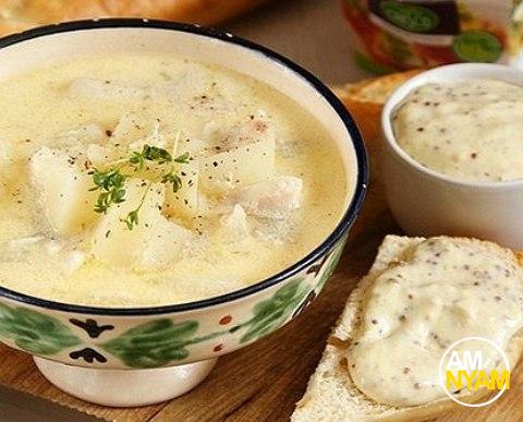| Рыбу нарезать небольшими кусочками, картофель порезать крупным кубиком. В кастрюле на оливковом масле пассируем до прозрачности лук, добавляем картошку и немного обжариваем, вливаем вино и даем ему наполовину выпариться. Добавляем 3 стакана кипятка и варим до готовности картошки (из-за вина это будет долго). Взбиваем желтки, добавляем 1 половник отвара из кастрюльки, непрерывно помешивая вводим смесь обратно к картошке, добавляем рыбу, уменьшаем огонь до минимума и варим еще 5-7 минут, помешивая и не давая закипеть, до полной готовности. Солим, перчим. Подаем с гренками. Приятного аппетита! | |